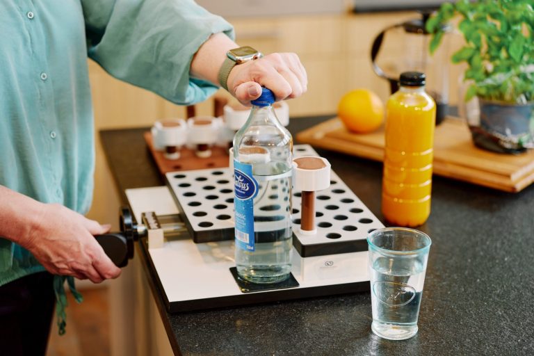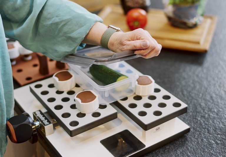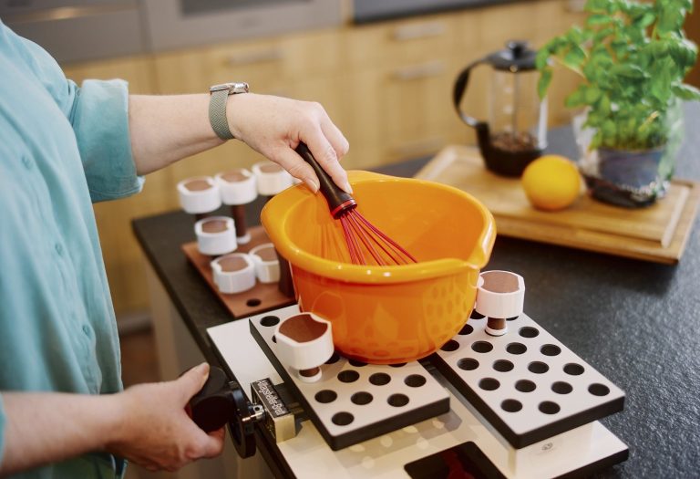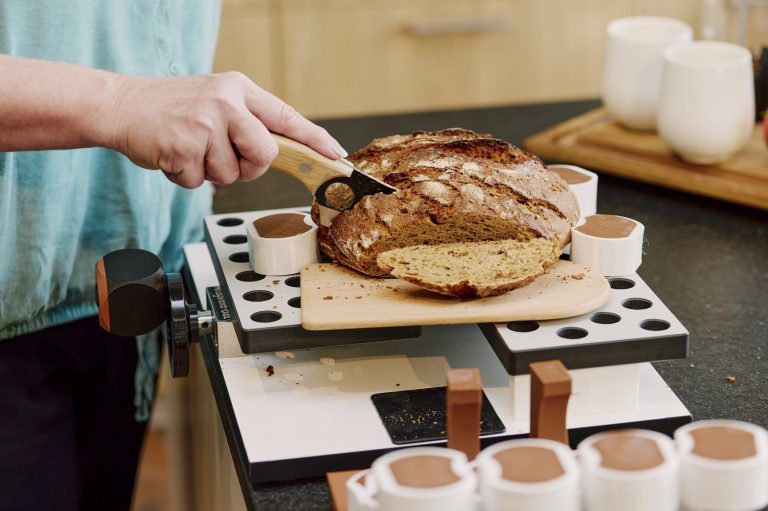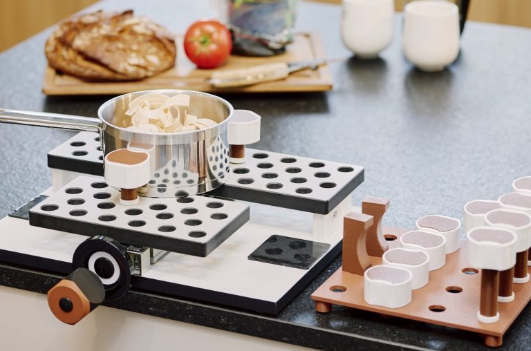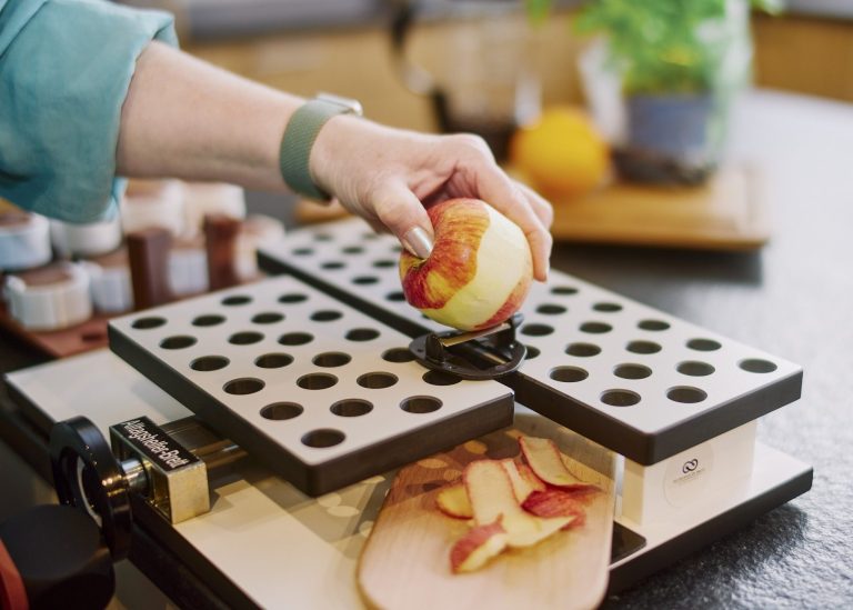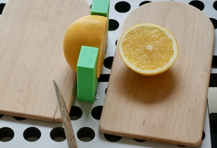 Durch sein Eigengewicht steht das Alltagshelfer-Brett stabil auf der Arbeitsfläche. Zusätzlich sorgen Saugnäpfe an der Grundplatte für